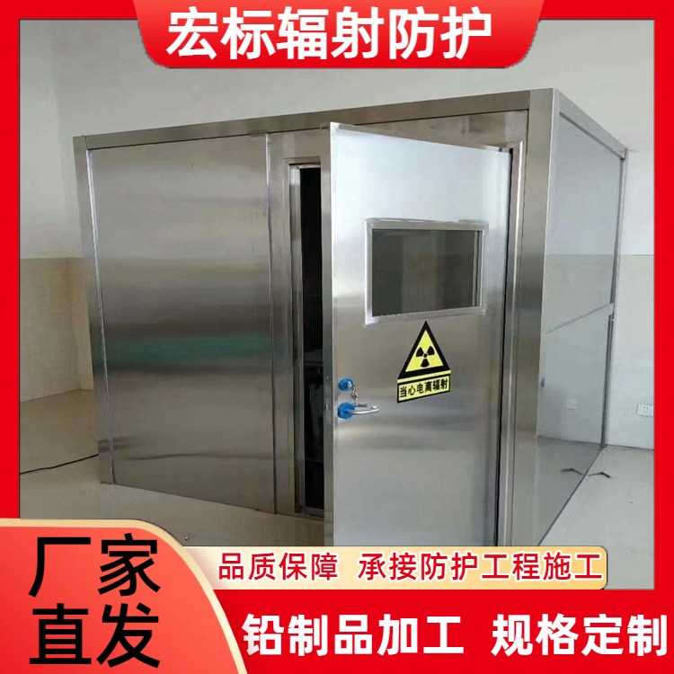该类铅房核心优势凸显,主体采用99.994%高纯度电解铅轧制而成的铅板,密度达11.34g/cm³,铅当量可根据CT设备类型精准定制,16排及以下设备适配1.5-2.0mmPb防护标准,128排及以上高端CT则配备3.0-4.0mmPb主防护墙体,确保射线泄漏量严格控制在2.5μSv/h以内。整体采用六面体全包裹防护结构,墙体、地面、天花板均采用铅板与防护涂料复合工艺,搭配配套铅防护门与高透光铅玻璃观察窗,门体配备电动联锁装置,实现“门未关闭设备无法曝光”的智能防护,从源头杜绝辐射泄漏风险。